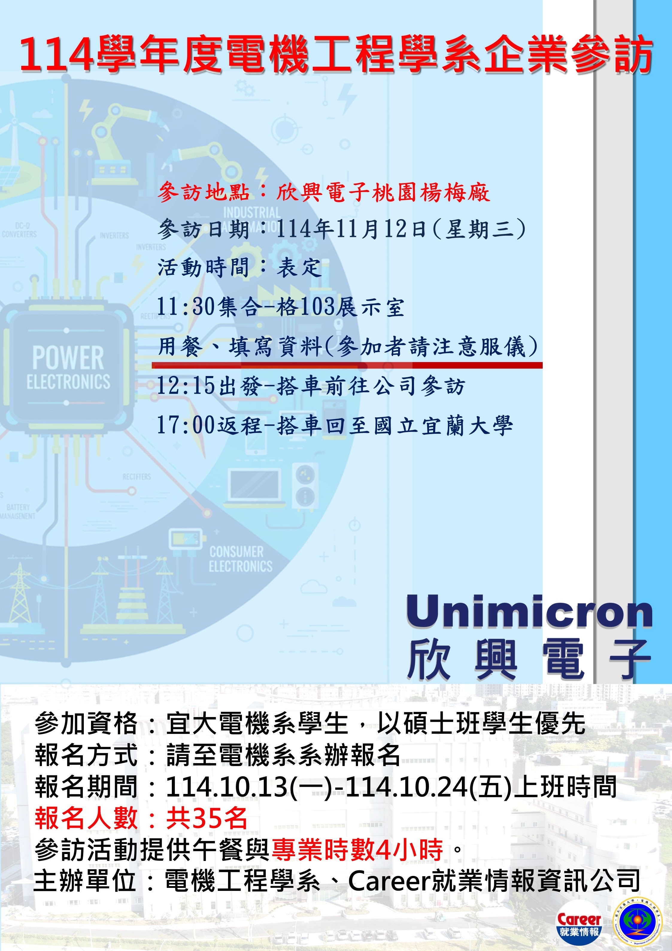 115學年度國立宜蘭大學電機工程學系碩士甄試第二階段面試相關事宜公告-口試時間表更新